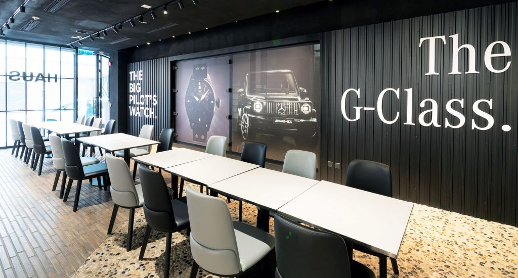 座落於皇后大道中,面積五千平方尺 的 HAUS 正式開幕。此間史無前例的概念店由平治與瑞士高級腕錶品牌, 沙夫豪森 IWC 萬國錶, 聯乘, 將為兩個品牌客人帶來前所未有的體 驗。除了富當代設計的陳列室和零售貴賓室,HAUS 更設有由 Tatler Dining Kitchen 策劃的酒吧餐廳以及提供多項尊貴禮遇的會員計劃。 概念店開幕初期將專注展示平治和 IWC 萬國錶最備受認可的品牌經 典: G-Class 和大型飛行員腕錶。