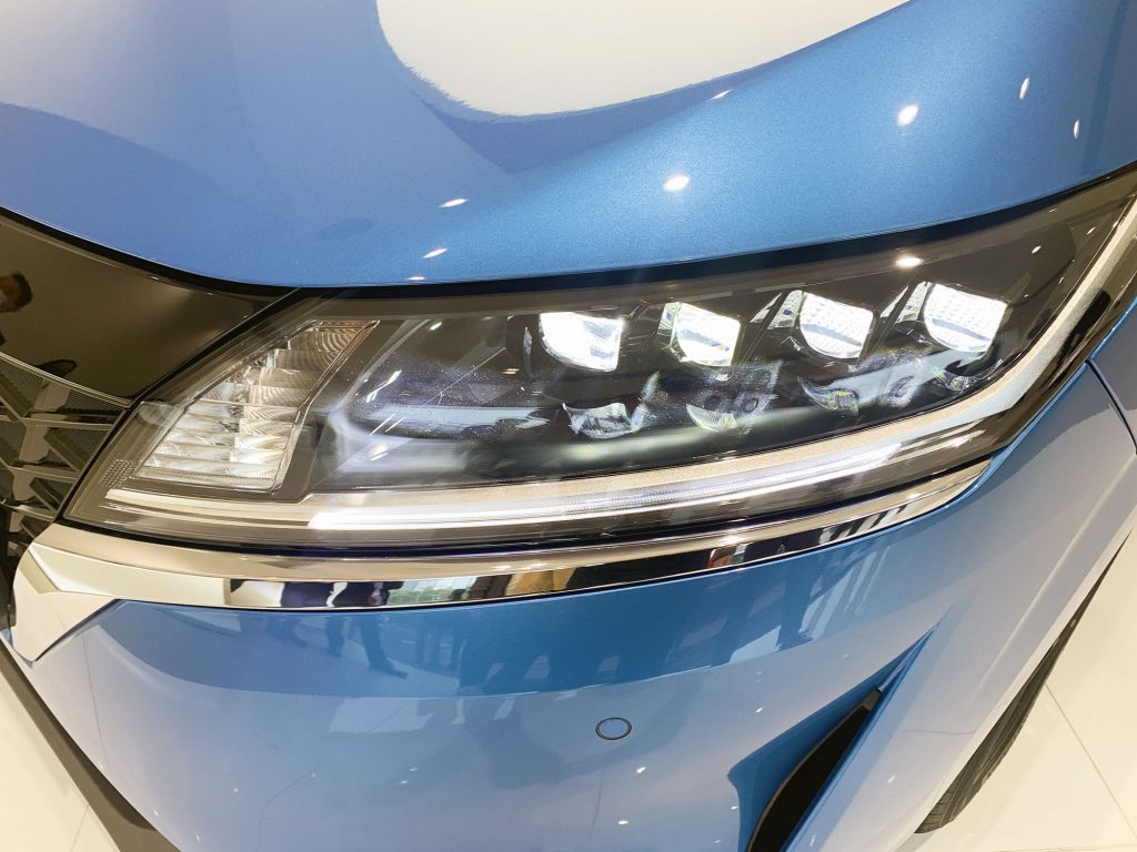 全新日產Note e-Power 代表了緊湊型汽車領域的新時代,e-Power即時強勁動力,同時兼具低油耗,為車主日常駕駛提供獨特振奮和樂趣,超越普遍顧客對緊湊車型揭背的固有認知。 在外型上全新的日產廠徽,展示在進化的日產標誌性V型動感面罩中央,成為吸引眼球焦點。 前面就隔山圖案取材自日本傳統玻璃切割「Kiriko」 工藝設計,傳達了日產汽車的日本工匠風情。V-Motion Grill 引領出來的頭燈,有四顆冰磚型LED投影燈組成,突顯全新Note e-Power銳利神態。