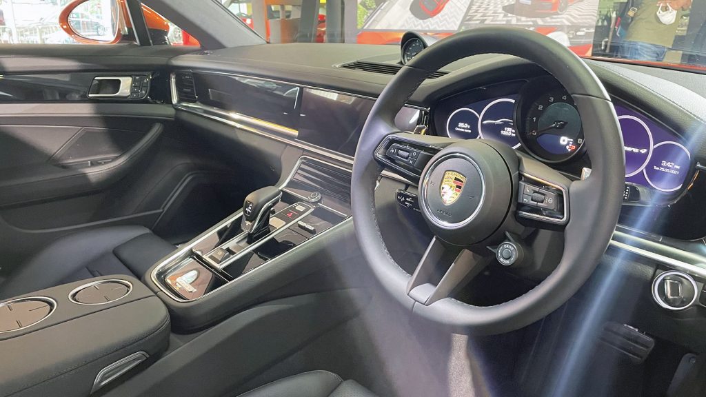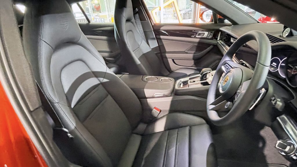 Panamera 忠於典型的保時捷設計基因,並與豪華房跑的奢華舒適度更深度融合,以高質素材質物料延續品牌永恆的動感跑車風格。車艙採用 Porsche Advanced Cockpit 操作概念,可迅速啟用最常用的重要功能,配合全面化的跑車人體工學、抬升式中央控制台、平坦寬闊的前方控台、位於儀錶中央的類比式轉速錶,以及全新研發的方向盤,同時配備三款座椅設計,整體為專注於跑車駕馭的駕駛者設計。前排標配的8向調整座椅提供絕佳舒適度,亦可選配舒適座椅(14 向電動調整)或全功能跑車座椅(18 向電動調整),迎合駕駛者及前座乘客的需要。至於後座座椅豪華舒適,提供充裕的頭部與腿部空間,以及在高速過彎時不客忽視的良好側向支撐,加配14 向舒適前座椅與8向舒適後座椅專有的按摩功能,大大提升整體駕乘體驗。