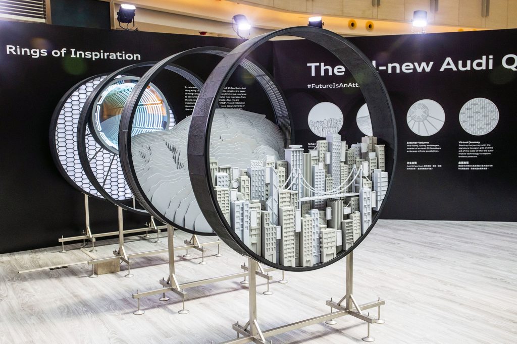 奧迪香港聯同本地創作三人組 Brainrental ,於7月9至18日期間在ELEMENTS圓方呈獻「Rings of Inspiration」展覽,以立體藝術作品展現城市的動感節奏,同時慶祝全新Audi Q5 Sportback加入Q系家族。