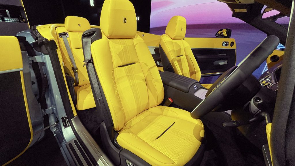 勞斯萊斯 Landspeed Collection的靈感來自George Eyston的非凡一生和破紀錄的壯舉。它還與Bonneville鹽湖超凡脫俗的景觀有著強烈的美學呼應。Landspeed Collection以特別打造的雙色外漆面呈現,以Black Diamond Metallic配搭新定制的顏色 Bonneville Blue。這種特別開發的色調對系列具有特殊意義,顏色在陽光下從淺藍色漸變成銀色,彷彿重現了Bonneville鹽湖上的蔚藍天空和 Thunderbolt 鋁製車身上清澈的鹽湖的倒影。
