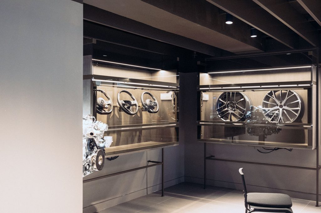 Experience Centre內可陳列最多六部瑪莎拉蒂汽車,現時當然包括最新登場的Grecale豪華SUV及MC20超級跑車。其設計特色之一,是根據廠方的最新意念,向街的展示空間,設置了特大LED屏幕,能為所展示的型號作出無數的背景視覺效果,吸引目光!另外,場內規劃了不同分區,展示出各項實體樣板,如車廂皮革、車身顏色、軚盤、輪圈款式等選擇,顧客對物有一定概念之後,可再透過投射屏幕,以數碼化3D技術,細致地配搭出所選汽車型號的預覽成品,服務貼心。與此同時,如果顧客對所選汽車型號有更進一步的配置要求,瑪莎拉蒂Experience Centre的Fuoriserie私人定制選項,可讓消費者配搭出一輛獨一無二的瑪莎拉蒂汽車,彰顯個人品味。