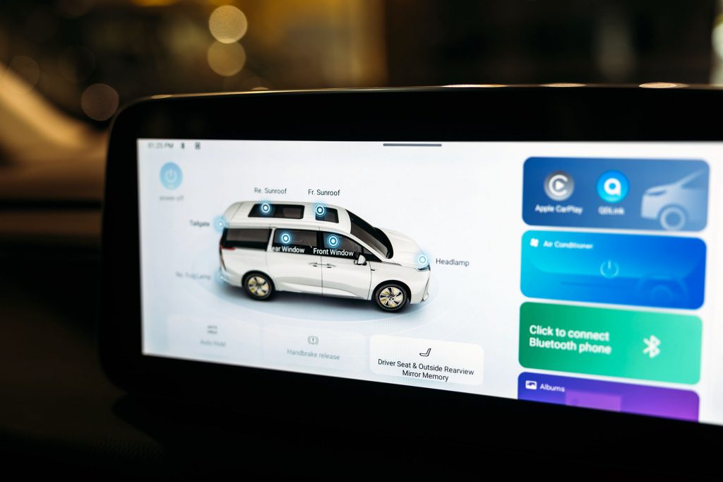 全車內外設備包羅萬有,智能實用與日常便利使全新MAXUS MIFA 9成為豪華七座MPV的性價比標竿!簡約未來感滿載的車廂配備12.3寸中控屏(內設Apple CarPlay及車輛設備控制介面)、12 組喇叭連低音喇叭*、多功能皮軚環、360 全景2D/3D 鏡頭、無線手機充電、64色氣氛燈、空氣淨化功能、電子倒後鏡*等車內設備,完美滿足家庭與商務日常,恍如置身客廳般舒泰自在;其他車身設備方面,全新MAXUS MIFA 9標配雙電盪門附防夾功能、多角度調節電動尾門、特大雙天窗等,上落收納從此無障礙,即使滿載也能感受到非凡的空間感,無時無刻為親朋好友、商務夥伴開展完美的純電之旅。