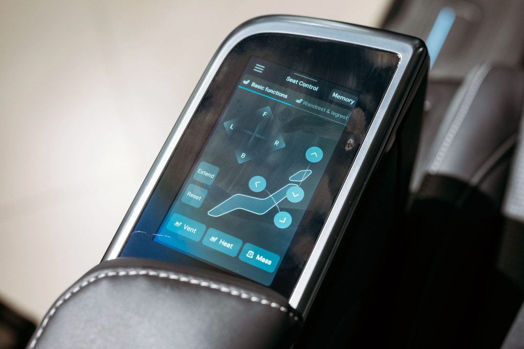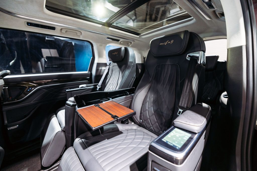 實用、舒適、豪華兼備,盡顯MIFA哲學中友好(Friendly)的造車概念,甫進入車廂瞬間,尊貴氛圍撲面而來。全新MAXUS MIFA 9前中排座椅均用上高級Nappa真皮*製造,備有不同滑動方向、按摩及記憶功能*、冷暖座椅*等;繡上高雅MIFA 9字樣的中排大班椅*更稱得上是貴賓級享受,扶手內置5寸多功能屏幕,輕鬆調較全方位座椅滑動角度*、8個專屬按摩模式*、椅背頭枕位置、通風加熱功能及冷氣等車廂設備;更貼心準備獨立工作桌板*,全方位為商務乘客提供最舒適的行車時光。
