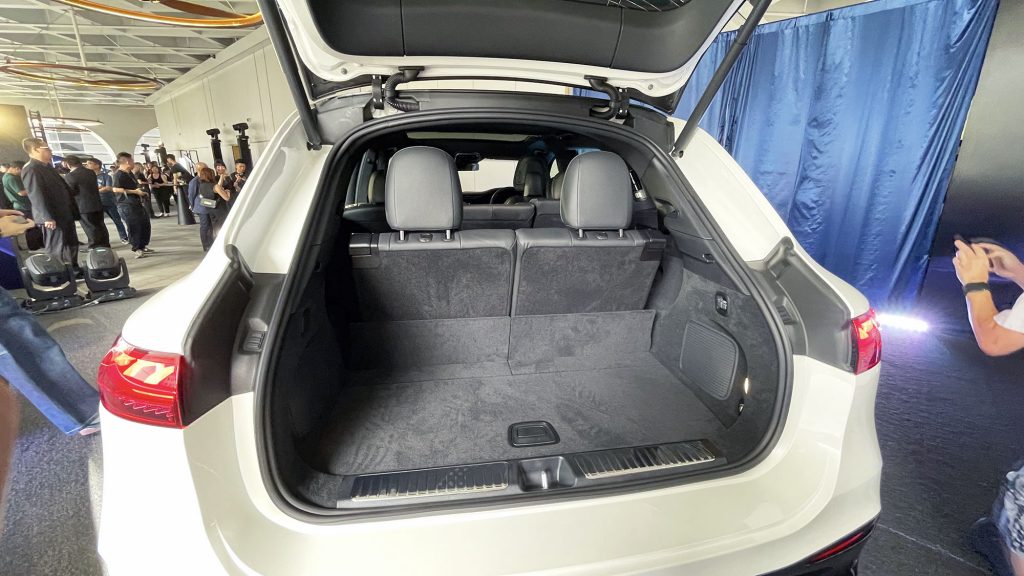 全新 EQS SUV 與 EQS Saloon 軸距相同 (3,210 毫米),但車身高出 200 多毫米。受惠於大型SUV 車身設計及電動車專屬平台的優勢,車廂空間非常寬敞。 第二排座椅可以電動調較。舒適的第三排座椅亦為標準設備。行李箱可容納多達四個高爾夫球袋。
